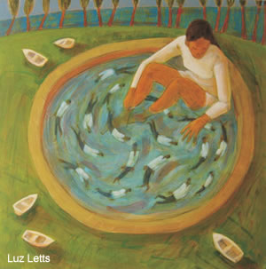 Para Elda Di Malio su trabajo muestra sólo personajes, individuos y por sobre todo seres humanos, dispuestos en el espacio intuyendo su naturaleza y entregados cada cual a su propio vivir. Luz Letts, en tanto, presenta un políptico compuesto por 4 pequeños cuadros con la mujer como protagonista: situaciones físicamente imposibles pero conceptualmente cotidianas.